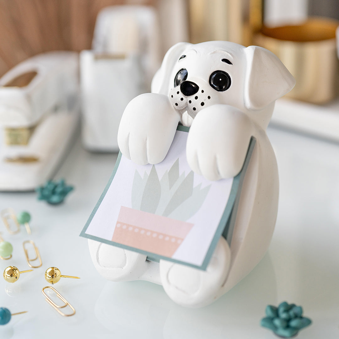 Get a free sticky notes pad with our adorable dog-shaped holder.