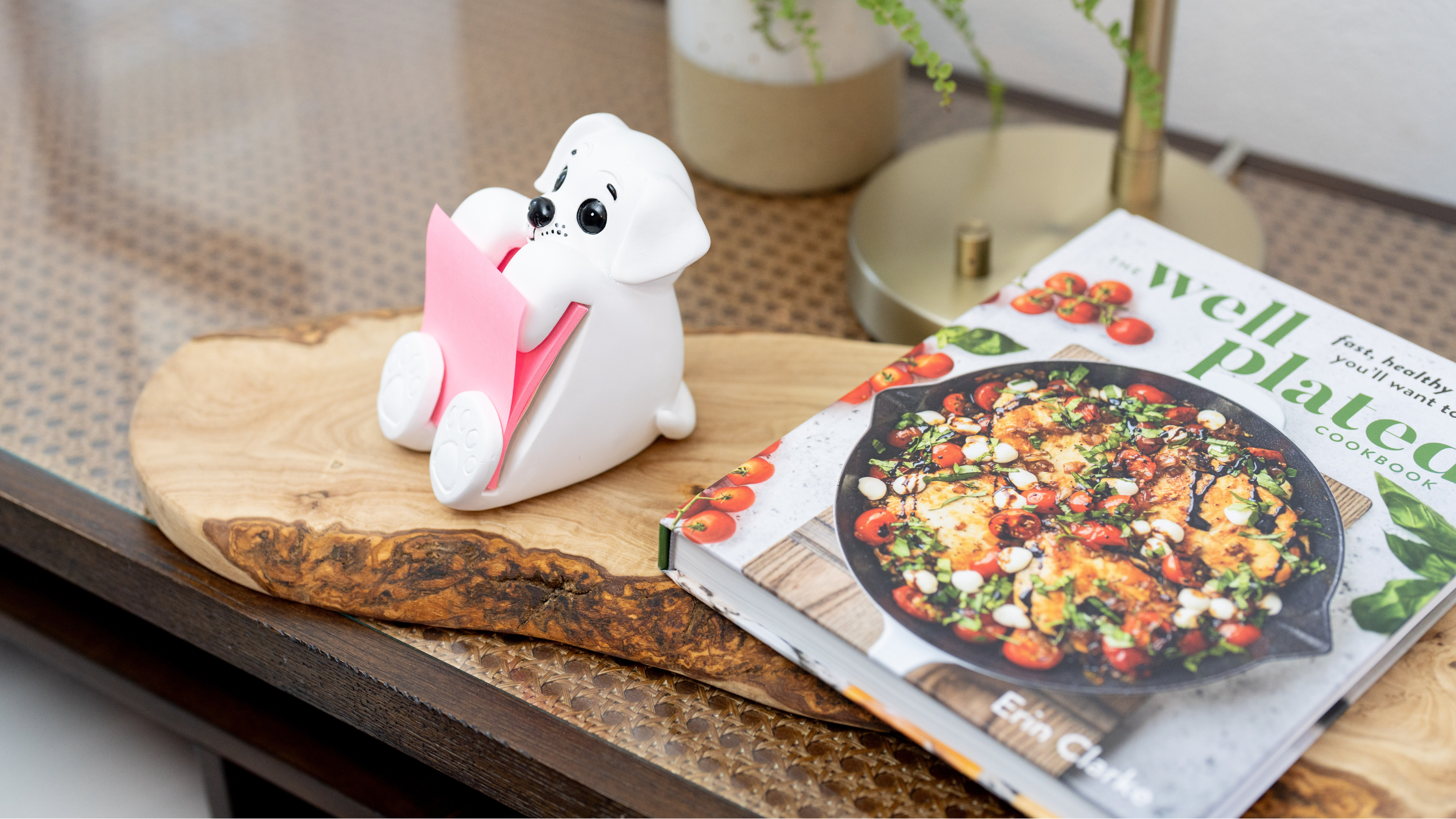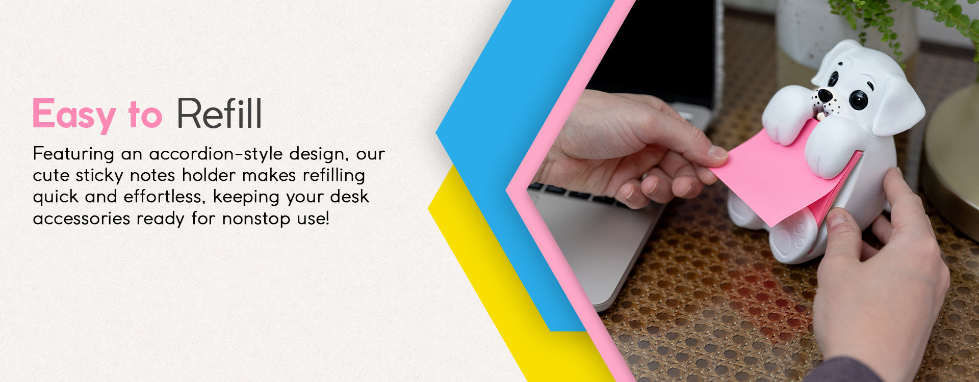 Get a free sticky notes pad with our adorable dog-shaped holder.